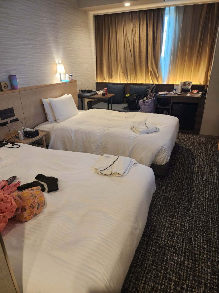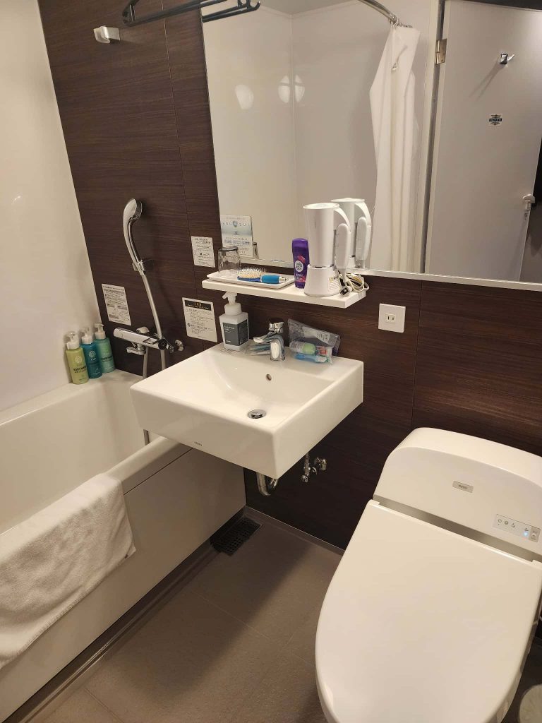Our room was compact but lovely. Plenty of room for a short stay. Storage was minimal but we kind of expected that in Japan. We loved the technology in the bathroom! Bidets are not common in Canada but they should be!!! This bathroom even had a section of the mirror that would not steam up during a shower so no need to wipe it off to brush your hair and finish getting ready for the day. Japanese hotels offer all kinds of amenities such as slippers, pajamas and all kinds of toiletries from the basics to free toothbrushes, facial masks, cleansers, cotton swabs, etc. Everything you need to make you feel pampered.