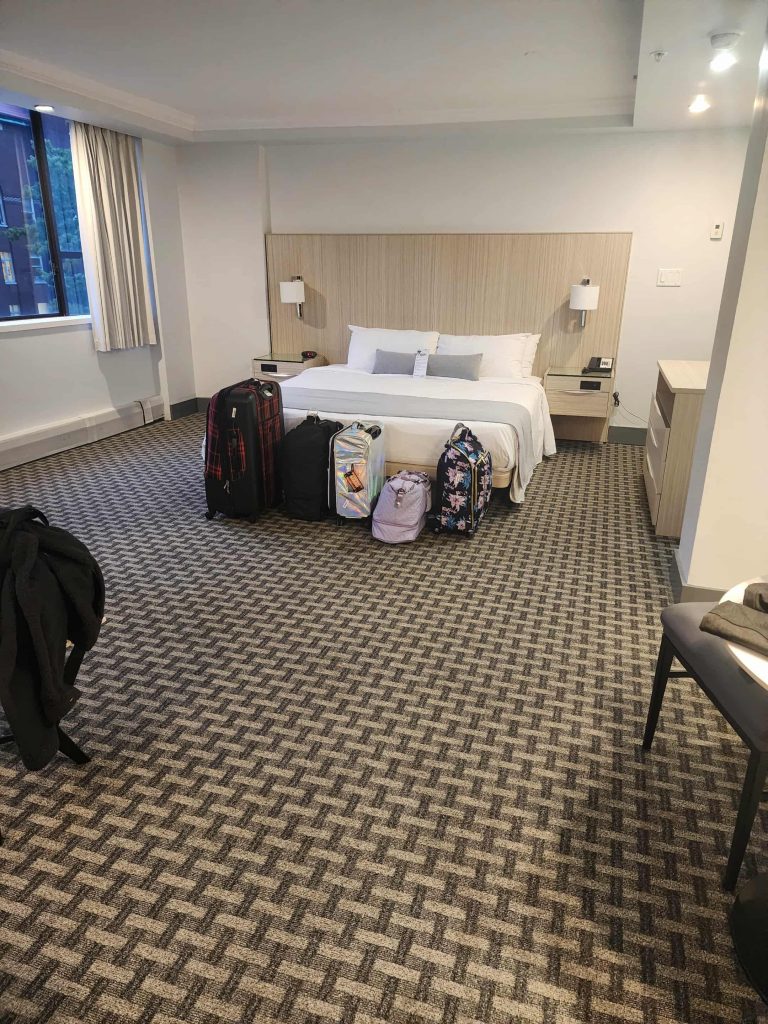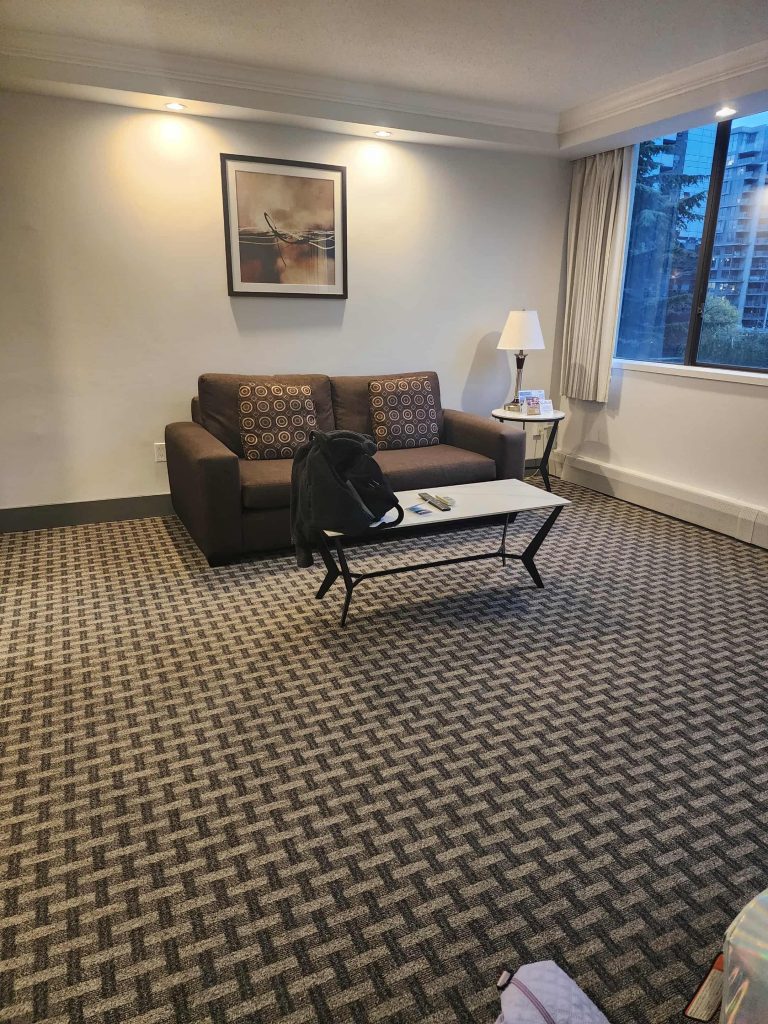 We stayed at the Century Plaza Hotel in Vancouver. We used some of our credit card travel credits for this hotel stay so it was very minimal cost and got us a great little suite for the night! We chose an embarkation time of 11:30 for the cruise so we went right from the hotel to the cruise port and boarded the ship! We were so excited (and a little nervous) to get underway! Our cruise would take us from Vancouver up to Alaska and then a North Pacific crossing to Japan. The cruise was 17 days (really 16 days but we crossed the international date line so we skipped a day). We were nervous about the crossing and possibility of rough seas.